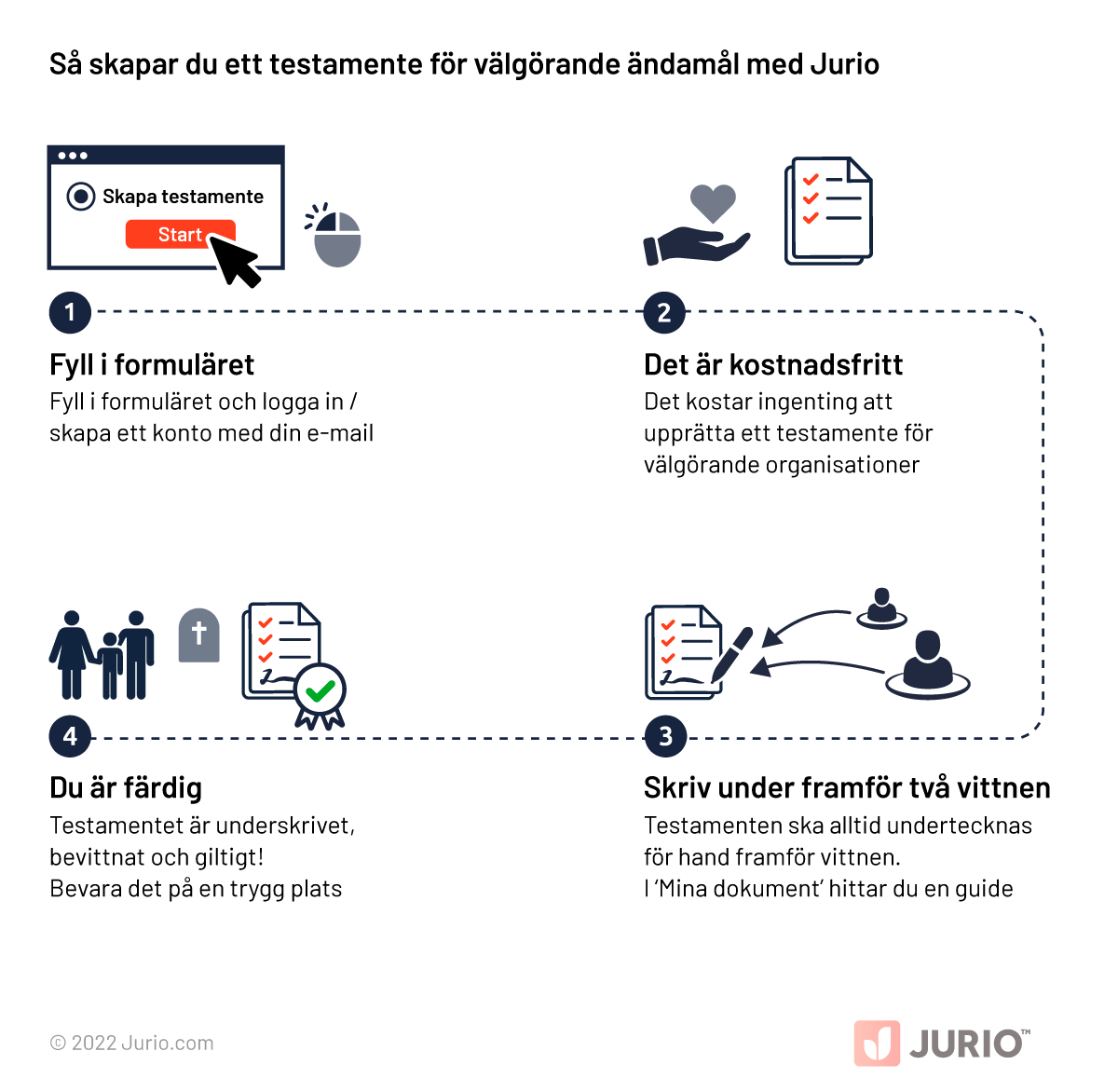 Att skriva ett testamente med Jurio är enkelt och smidigt. Det enda du behöver göra är